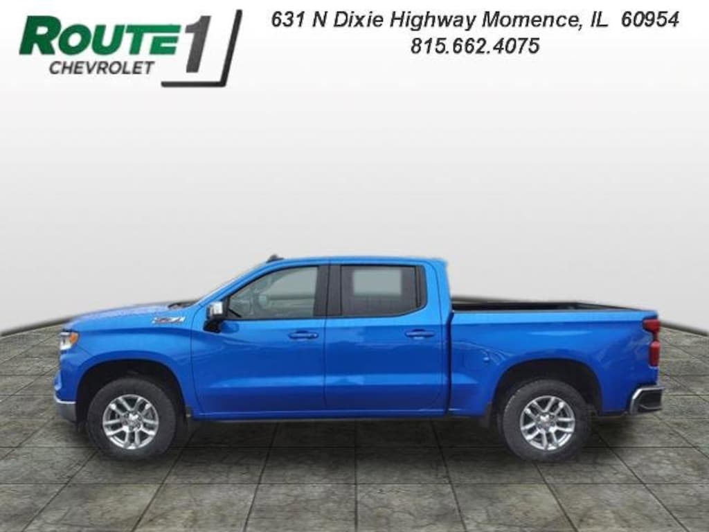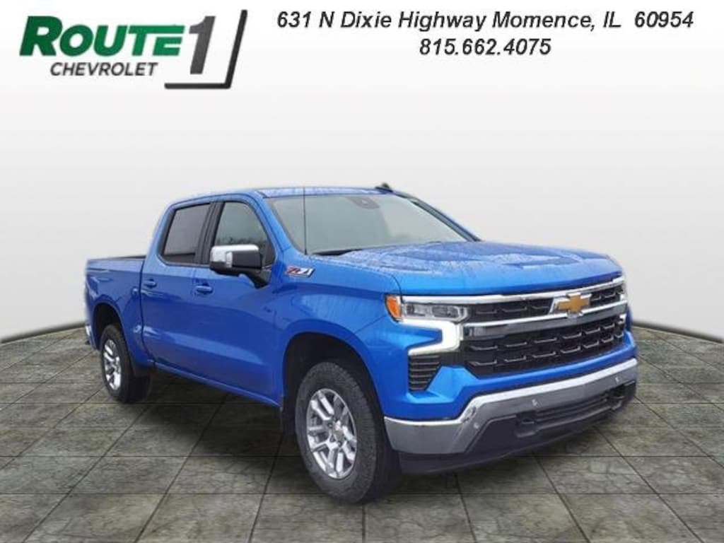 Riptide Blue Metallic 2025 Chevrolet Silverado 1500 LT LT1 4WD 8-Speed Automatic EcoTec3 5.3L V8 8-Speed Automatic, 4WD, Black Cloth, 10-Way Power Driver Seat w/Lumbar, 12.3 Multicolor Reconfigurable Digital Display, 120-Volt Bed Mounted Power Outlet, 120-Volt Interior Power Outlet, 220 Amp Alternator, 4-Wheel Disc Brakes, 40/20/40 Front Split-Bench Seat, 6 Speakers, 6-Speaker Audio System, ABS brakes, Air Conditioning, All-Star Edition, Alloy wheels, AM/FM radio: SiriusXM with 360L, Apple CarPlay/Android Auto, Auto High-beam Headlights, Auto-Locking Rear Differential, Automatic Emergency Braking, Automatic temperature control, Bluetooth® For Phone, Brake assist, Bumpers: chrome, Chrome Mirror Caps, Cloth Seat Trim, Color-Keyed Carpeting Floor Covering, Compass, Convenience Package, Deep-Tinted Glass, Delay-off headlights, Driver door bin, Driver vanity mirror, Dual front impact airbags, Dual front side impact airbags, Dual Rear USB Ports (Charge Only), Dual-Zone Automatic Climate Control, Electric Rear-Window Defogger, Electronic Cruise Control, Electronic Stability Control, Emergency communication system: OnStar, EZ Lift Power Lock & Release Tailgate, Following Distance Indicator, Forward Collision Alert, Front anti-roll bar, Front Center Armrest w/Storage, Front dual zone A/C, Front Frame-Mounted Black Recovery Hooks, Front Pedestrian Braking, Front reading lights, Front Rubberized Vinyl Floor Mats, Front wheel independent suspension, Fully automatic headlights, HD Rear Vision Camera, Heated door mirrors, Heated Driver & Front Outboard Passenger Seats, Heated front seats, Heated Power-Adjustable Outside Mirrors, Heated Steering Wheel, Heated steering wheel, Hitch Guidance, Illuminated entry, Inside Rear-View Mirror w/Tilt, Integrated Trailer Brake Controller, IntelliBeam Automatic High Beam On/Off, Keyless Open & Start, Lane Keep Assist w/Lane Departure Warning, LED Cargo Area Lighting, Low tire pressure warning, Manual Tilt/Telescoping Steering Column, Occupant sensing airbag, OnStar Services Capable, Outside temperature display, Overhead airbag, Overhead console, Panic alarm, Passenger door bin, Passenger vanity mirror, Power door mirrors, Power driver seat, Power Front Windows w/Driver Express Up/Down, Power Front Windows w/Passenger Express Down, Power Rear Windows w/Express Down, Power steering, Power windows, Premium audio system: Chevrolet Infotainment 3 Premium, Radio data system, Radio: Chevrolet Infotainment 3 Premium System, Rear 60/40 Folding Bench Seat (Folds Up), Rear reading lights, Rear Rubberized-Vinyl Floor Mats, Rear step bumper, Rear window defroster, Remote keyless entry, Remote Start Package, Remote Vehicle Starter System, Security system, SiriusXM w/360L Trial Subscription, Speed control, Speed-sensing steering, Split folding rear seat, Standard Suspension Package, Standard Tailgate, Steering Wheel Audio Controls, Steering wheel mounted audio controls, Tachometer, Teen Driver, Telescoping steering wheel, Theft Deterrent System (Unauthorized Entry), Tilt steering wheel, Tire Pressure Monitoring System, Traction control, Trailering Package, Trip computer, Variably intermittent wipers, Voltmeter, Wheel Locks (Set of 4) (LPO), Wheels: 17 x 8 Bright Silver Painted Aluminum, Wi-Fi Hot Spot Capable, Wrapped Steering Wheel.