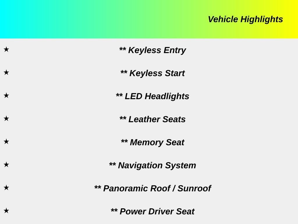 - Panoramic Roof / Sunroof